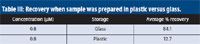 Table III: Recovery when sample was prepared in plastic versus glass.