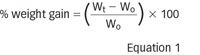 The joint of the treated body and cap of the capsule was sealed with a small amount of the 5% w/v ethyl cellulose ethanolic solution, and the filled and sealed capsules were then coated with CAP to ensure that drug release occurred in the colon rather than in the stomach. The various parameters of coating conditions were standardized, such as dipping time (5 s), coating solution concentration, temperature (25±10 °C) and drying time (5 min) at 500 °C. Coating was repeated until a 6–8% increase in weight was obtained. The percentage weight gain of the capsules before and after coating was determined using Equation 1.