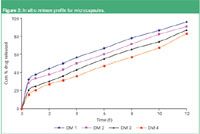 The angle of repose of four microcapsule formulations, shown in Table 1, exhibited good flow properties and the drug content was good in all cases, probably because of the adequate polymer concentration. The remaining drug loss during the process can possibly be related to the partitioning of the drug to the oil phase.
