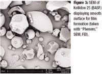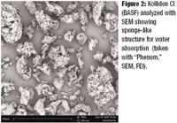 Scanning electron microscopy (SEM) provides a qualitative assessment of size, shape, morphology, porosity, size distribution, crystal form, and consistency of powders or compressed dosage forms (see Figure 1). This information can be correlated to assess dissolution behavior, bioavailability, and crystalline structure. SEM images also help analysts determine whether particles are maintaining desired physical characteristics during processing, including after compaction or direct compression (see Figures 2, 3).