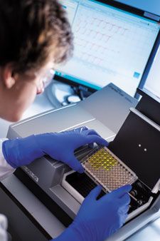 Endotoxin testing methods require interpretation by skilled laboratory technicians. Here, a technician performs an assay in the lab.