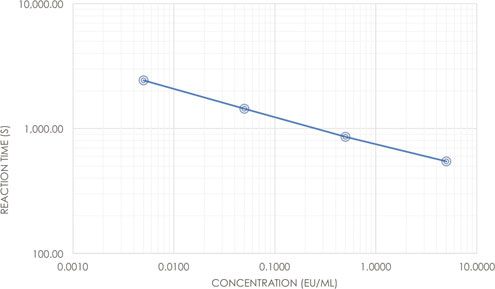 For the kinetic method, the concentration of endotoxin in a sample is calculated based on its reaction time compared with the reaction time of the endotoxin standard curve (Figure 1).