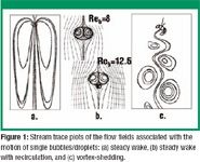 The most important feature in terms of local mixing is the dynamic behavior of the droplet (or bubble) wake, which has been extensively studied (24–25). Studies of wake phenomena and fluid flow past solid obstacles date as far back as Leonardo da Vinci (26). Subsequent studies focused on the development of highly accurate pendulum clocks for the determination of a ship's location at high sea. The construction of these clocks required a detailed understanding of the airflow and drag around a swinging pendulum (The Longitude Act was passed in England in 1714, in which Parliament promised a prize of 20,000 pounds for the solution of the "longitude problem." To win the prize, the inventor had to construct an accurate and reliable pendulum clock, requiring a precise understanding of the wake behind the pendulum) (27).