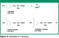 We purchased 98% pure l-tyrosine from Sigma Aldrich (St. Louis, MO). Samples of 3-iodo-l-tyrosine and 3,5-diiodo-l-tyrosine were also purchased from Sigma Aldrich for use as standards for high-performance liquid chromatography (HPLC). All other chemicals (sodium hydroxide, potassium iodide, iodine, sodium phosphate dibasic, sodium phosphate tribasic dodecahydrate, methylene chloride, and glycerin) were purchased from either Fisher Scientific or Sigma Aldrich and were a minimum of 98% pure.