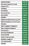 Salary according to job function. The five highest paying jobs were in consulting, production management, computer information services and technology, drug delivery, and biopharmaceutics (see Figure 4). Most fields showed an increase in their mean base annual salaries compared with values reported in last year's survey.
