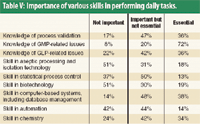 Table V: Importance of various skills in performing daily tasks.