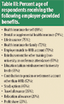 Table III: Percent age of respondents receiving the following employer-provided benefits.