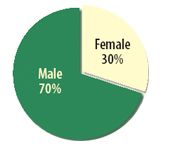 Sex and age. Of the total number of responses, 70% overall were from men (see Figure 1). The average respondent age is 43 years.