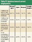 Table IV: Opinions toward current employment.