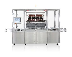 Uhlmann’s Integrated Bottle Center can integrate counting and capping with desiccant feeding, cottoning, and induction sealing, plus inspection systems such as cameras and metal detectors. Options include the IBC 120 model, capable of speeds of 150 bpm, and the faster IBC 240 machine (240 bpm). The IBC 120 model handles a slightly broader container range with volumes from 30–1500 cc, diameters from 25–125 mm, and heights from 45–200 mm (2).