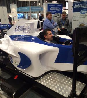 INTERPEHX 2014 attendees tested their driving skills in a racecar simulator at the Federal Equipment booth.