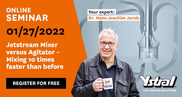 During the approximately one-hour online seminar on 27. January, Dr. Hans-Joachim Jacob from ystral will give you some insights you've probably never heard before. After that there is some time for your questions. And you probably just need new mixers in your process plants to double their effectiveness.