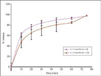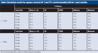 Table I: Dissolution results for capsules stored at 40 °C and 75% relative humidity (RH) for 1 and 3 months.