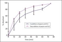 Figure 2: Dissolution profile comparison of coaddition and stepwise addition of pepsin and sodium lauryl sulfate (SLS).