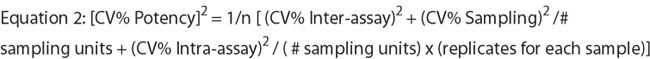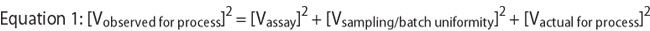 The statistical likelihood for failures now needs to be estimated and a component variance analysis performed to estimate the contribution of each component. Then, focus can be put on how to set limits on post-validation activities from understanding the potential impact on the likelihood for all cases (1A-2B) to occur. The situation can be most effectively improved by having primarily in mind patient safety/dosing and regulatory expectations, but secondarily also the firm as the need to pass specifications and stay profitable is important. Similar to propagation-of-error calculations, an estimate for the sampling variance (batch-uniformity, stability, protein adsorption losses, etc.), could allow immediate estimation of the actual (true) process performance for potency by simply solving for it from Equation 1 (V=variance).