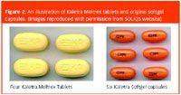Several companies specialize in the use of HME as a drug delivery technology including PharmaForm (TX, USA) and SOLIQS (Germany). SOLIQS has developed a proprietary Meltrex formulation and redeveloped a proteaseinhibitor combination product, Kaletra, for the treatment of human immunodeficiency virus (HIV) (Figure 2). The formulated HME product significantly enhanced the bioavailability of both APIs.35 Moreover, HME Kaletra tablets were shown to have significant advantages for the patient compared with the previous soft gel capsule formulation, such as reduced dosing frequency and improved stability, as evidenced by FDA's decision to fasttrack approval. In addition, SOLIQS has also developed a fast-onset ibuprofen system and a sustained release formulation of verapamil (Isoptin SRE) that was the first directly shaped HME product on the market.