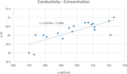 Figure 3: Trend of the concentration with the conductivity (data obtained from machine tests).