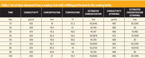 Concentration was evaluated as in previous tests (using a thermal analyzer), while conductivity was measured in the sealing baths (see Table I and Figure 5).