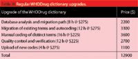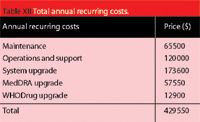 Maintenance and infrastructure. Most of the components mentioned require annual maintenance payments for upgrades, bug fixes and new versions, ranging between 15-20% of the list price. In addition, certain annual payments occur including off-site tape storage and licences for dictionaries such as MedDRA and WHODrug (Table VII).