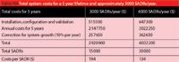 Table XIII : Total system costs for a 5 year lifetime and approximately 3000 SADRs/year.