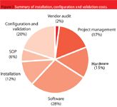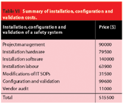 The total costs amount to $515500 and, as previously stated, these costs could be significantly higher if more complex reporting was required from the system (Table VI and Figure 3). This is a substantial investment and could be unaffordable for a small and medium-sized enterprise (SME). It is important to note that the costs for installation, configuration, validation and the SOPs are as great as the hardware and software costs combined and, for more complex systems, could be greater.