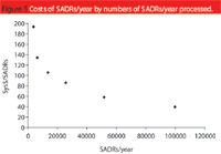 Figure 5 : Costs of SADRs/year by numbers of SADRs/year processed.