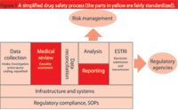 Figure 1 : A simplified drug safety process (the parts in yellow are fairly standardized).
