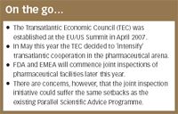 On 13 May 2008, US Cabinet members and European Commissioners met for a second session of TEC and decided to intensify the cooperation between the US and the European Union in the pharmaceutical arena. In theory, this can be regarded as an important date for pharmaceutical companies engaged in the marketing of products on both sides of the Atlantic. In practice, however, it might not be quite the milestone it could be.