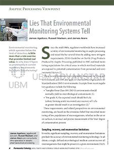 When referring to this article, please cite it as J. Agalloco, R. Madsen, and J. Akers," Lies That Environmental Monitoring Systems Tell," Pharmaceutical Technology Biologics and Sterile Drug Manufacturing 2018 eBook (May 2018).
