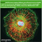 In the biological arena, new and highly useful fluorescent markers are used to stain or 'label' specific structures of interest. They have transformed the range and applicability for optical observation. These labels are excited and correspondingly emit at specific wavelengths; thus, different facets of a specimen can be 'selected' by controlling the wavelength of the delivered and captured light. For example, labels such as 4',6-diamidino-2-phenylindole (DAPI) are used to highlight the nucleus of a cell and MitoTracker Orange is used for mitochondria. Figure 1 shows an example of a multiple stained section, viewed in fluorescence. There has been an explosion in fluorescent labels for examining biological structures, in fixed and live cell preparations.