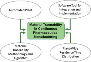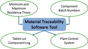 A systematic framework and software are needed to implement material traceability in continuous pharmaceutical tablet manufacturing.