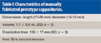 Table I: Characteristics of manually fabricated prototype suppositories.