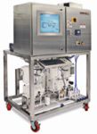 Figure 2: A process analytical technology-based in-line buffer-dilution skid equipped with conductivity and pH process analyzers linked with a process feedback-control loop.