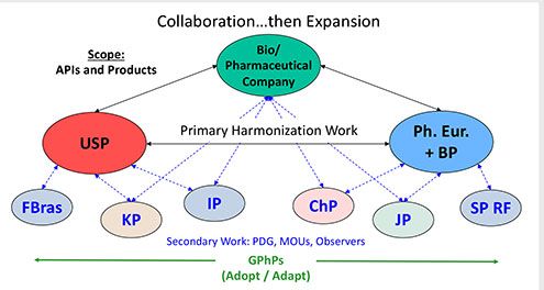 Recognizing the compliance challenges resulting from divergent standards contained in the various pharmacopoeia monographs for a particular material or product, the industry partnered with the pharmacopoeial authorities in a pilot project to develop “prospectively harmonized” monographs in the USP and Ph. Eur. The approach taken was to submit the necessary information and materials (samples and reference standards) to both USP and Ph. Eur. at the same time, with collaboration among the participants throughout the monograph elaboration process. The industry perspective on the details of this prospective harmonization approach was provided in an article published in the USP and Ph. Eur. pharmacopoeia forums (1, 2). With JP as an interested observer to this new approach for monograph development, the industry article was also translated into Japanese and published in the JP forum (3). The work was also shared with the authorities of other pharmacopoeias, including BP, the Indian Pharmacopoeia (IP), the Korean Pharmacopoeia (KP), and the Chinese Pharmacopoeia (ChP), through individual discussions and presentations at the Global Summit of the Pharmacopoeias (4).