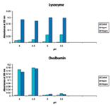 Figure 4: Effect of pH on the precipitation of ovalbumin and lysozyme. Turbidity was measured spectrophotometrically.