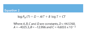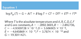 The resulting calculated value of pW should be compared with that from the estimated mol fraction pWE. If they do not agree, further estimations must be made until the value from Equation 10 and the estimated mol fraction are equal. Equality is achieved when the equation is in balance and hence gives the saturated water vapour pressure at the known temperature and H2O2 gas concentration. The relative humidity (RH%) is found using Equation 11.