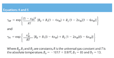Equation 3 may be rewritten for both water and hydrogen peroxide using the subscripts H and W (Equation 7). Substitution for xW and xH in Equation 6 gives Equation 8.
