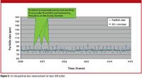 The choice of measurement type and location is naturally application-dependent. An in line or on line measuring device is generally able to provide substantially more detailed information than traditional sampling. For example, an on line particle-size measurement shows the effect of the automated hammers on the drying chamber (see Figure 5).