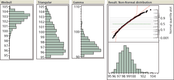 Number of sub-processes and/or magnitude of variation. If there are not a sufficient number of sub-processes or the magnitude of variability from one sub-process overwhelms the others, then the final result may not be normal. This might cause a skewed distribution, a distribution with thicker “tails” than a normal distribution, a bi-modal distribution, or any number of distributions. Figure 4 displays a simulated process with a resulting distribution that is non-normal.