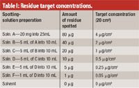 The consistent results obtained using either method of coupon presentation answered a long-standing question. The sequential coupon presentation raised a concern that the decreasing residue concentrations and the close proximity of adjacent residues might lead observers to see residues where they might not ordinarily have identified a visible residue.