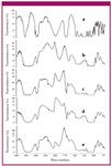 Characterization of complexes. IR spectroscopic analysis. Fourier transform infrared spectroscopy (FT IR) has been used to assess the interaction between β-CD and guest molecules in the solid state. Upon complexion, the peak band of the guest shifts in the absorption spectrum. Nonetheless, some of the changes are very subtle and require careful interpretation of the spectrum (26).