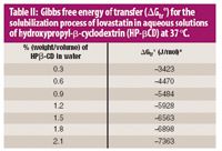 Table II: Gibbs free energy of transfer (ÎGtrð) for the solubilization process of lovastatin in aqueous solutions of hydroxypropyl-β-cyclodextrin (HP-βCD) at 37 8C.