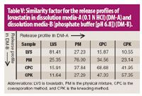Table V: Similarity factor for the release profiles of lovastatin in dissolution media-A (0.1 N HCl) (DM-A) and dissolution media-B (phosphate buffer [pH 6.8]) (DM-B).