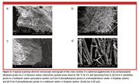 Agglomerate structures. SEM images of the cross-section of all spherical agglomerates of carbamazepine dihydrate, Form C cimetidine, Form E phenylbutazone, and Form A phenylbutazone were categorized into four different typical modes. All primary crystals were needles and were: tangled with fibrils (see Figure 5(a)); randomly stacked together and linked by solid nodes (see Figure 5(b)); bundled together in parallel (see Figure 5(c)) and radiated from a center core; and jointed by solid bridges to form many A-shaped or H-shaped ladder structures (see Figure 5(d)) (49).