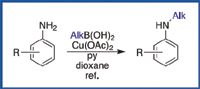 Figure 1: Copper-promoted alkylation of aromatic amines with alkylboronic acids. (FIGURE 1 IS COURTESY OF GALCHIMIA)