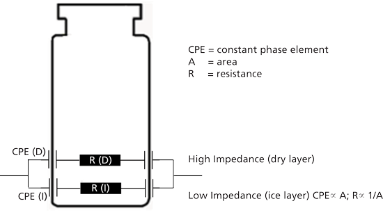 The electrical impedance of a material determines how easily the material will conduct a current when an alternating voltage is applied to it. Electrical impedance is a function of both the dielectric and conductive properties of the material, which are in turn defined by the temperature, composition, and physical state of the material contained within the vial. Changes in these electrical parameters, therefore, directly mirror the condition of the sample and progression of the freeze-drying cycle. The electrical parameter that has the most significant effect on the output from the impedance measurement system is the resistance (or conversely, the conductivity) of the product contained within the glass vial. Conductivity is widely used for the determination of the physical properties of materials in a wide spectrum of applications due to the fact that the measurement technology is relatively inexpensive.