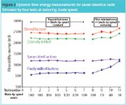 Figure 2 Dynamic flow energy measurements for seven identical tests followed by four tests at reducing blade speed.