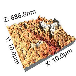 AFM works by scanning a probe with a sharp tip over the sample surface to build up a map of height and topography. The AFM uses an optical lever to monitor the motion of the tip mounted at the end of a reflective cantilever using a laser that is focused on the back of the cantilever. When scanning the surface sample, the tip undergoes upward and downward movements with the changes in the surface topography leading to changes in the deflection of an optical laser. The tip can be maintained at a constant force that allows real-time determination of height information or at a constant height to determine the deflection force above the sample. The images generated from the detector are three-dimensional topographical maps of the surface that are constructed by plotting the local sample height versus horizontal probe tip position (see Figure 1).