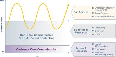 Biopharmaceutical companies are facing increased research costs, along with the ongoing complexity of global regulations and market conditions. All of these variables create a diverse set of needs for biopharmaceutical research portfolios, which, in turn, create a wide range of needs in the outsourcing market. Adding to the complexity is the fact that biopharma companies have a multitude of choices in outsourcing partners and nearly as many options for contracting methods; there is truly no one-size-fits-all scenario for meeting their needs.