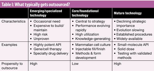). Activities that involve seldom-used technologies and capabilities, are highly novel, or are high risk, are likely to be conducted at a CMO. For instance, global bio/pharma companies frequently turn to contract manufacturers of highly potent APIs (HPAPI) and dosage forms incorporating HPAPI, because they require very specialized capabilities that CMOs can amortize across multiple clients. CMOs have manufactured the first antibody-drug conjugates (ADCs), which similarly require very specialized facilities and which are still unproven commercially. CMOs have also been leaders in investing emerging technologies such as cell and gene therapy, being among the first companies to establish facilities and improve the technology. Other specialized requirements that are often outsourced include drug delivery and clinical packaging.